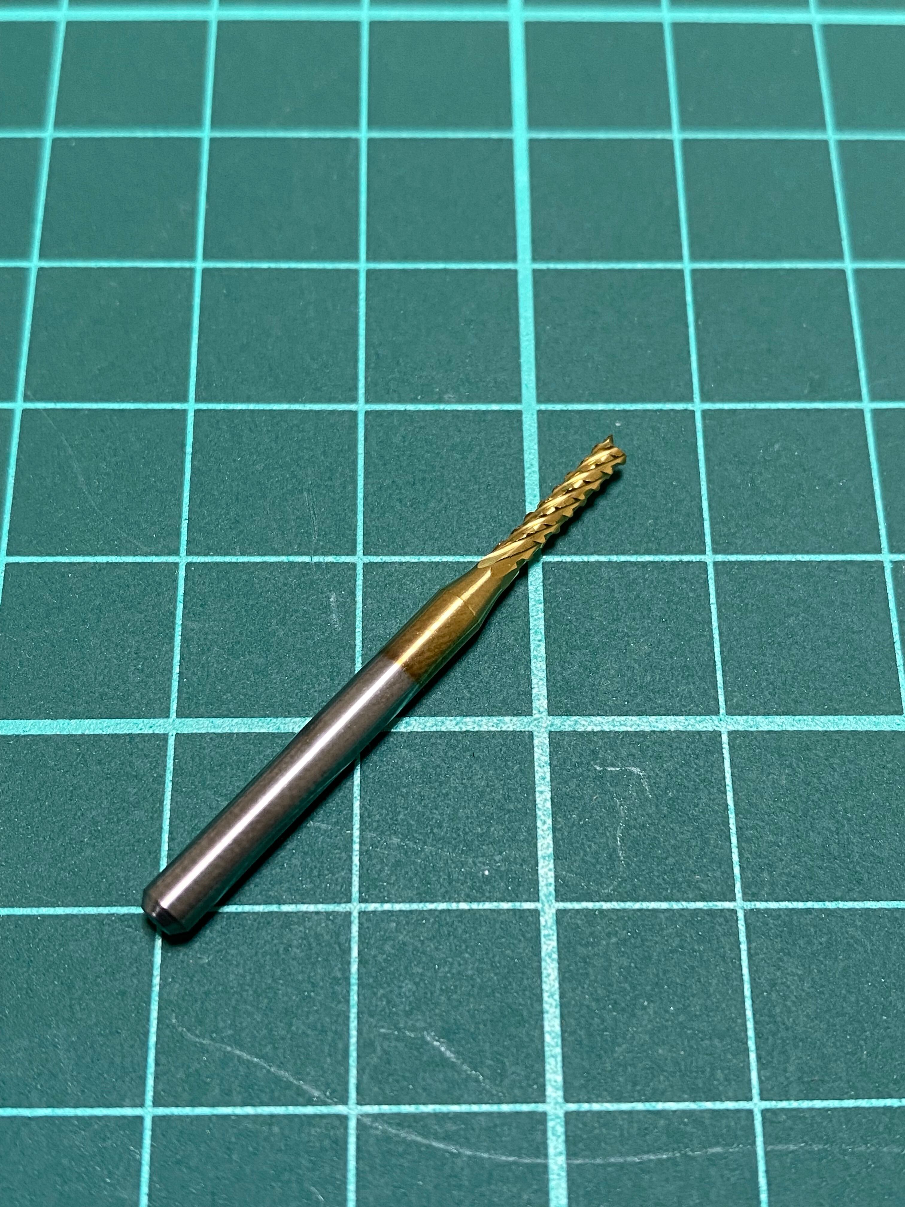 特殊な刃先形状を採用している為、通常の4枚刃のエンドミルよりも長寿命なのが特徴で。更にチタニウムコーティングも施してありますのでGFRP、カーボン加工用エンドミルとしては非常に高性能な物となります。